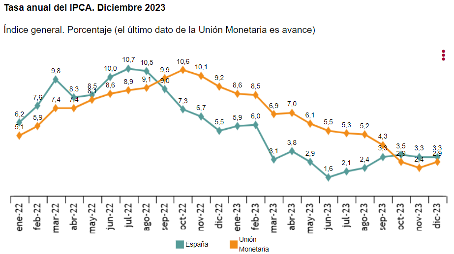 - IPC Armonizado: 3,3% vs 3,3% anterior