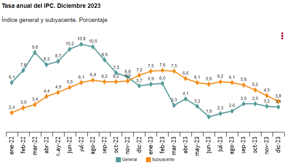 - Subyacente (anual): 3,8% vs 4,5% anterior
