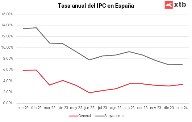 - Cambio IPC anual: 3,4% frente al 3,4% esperado y 3,1% anterior