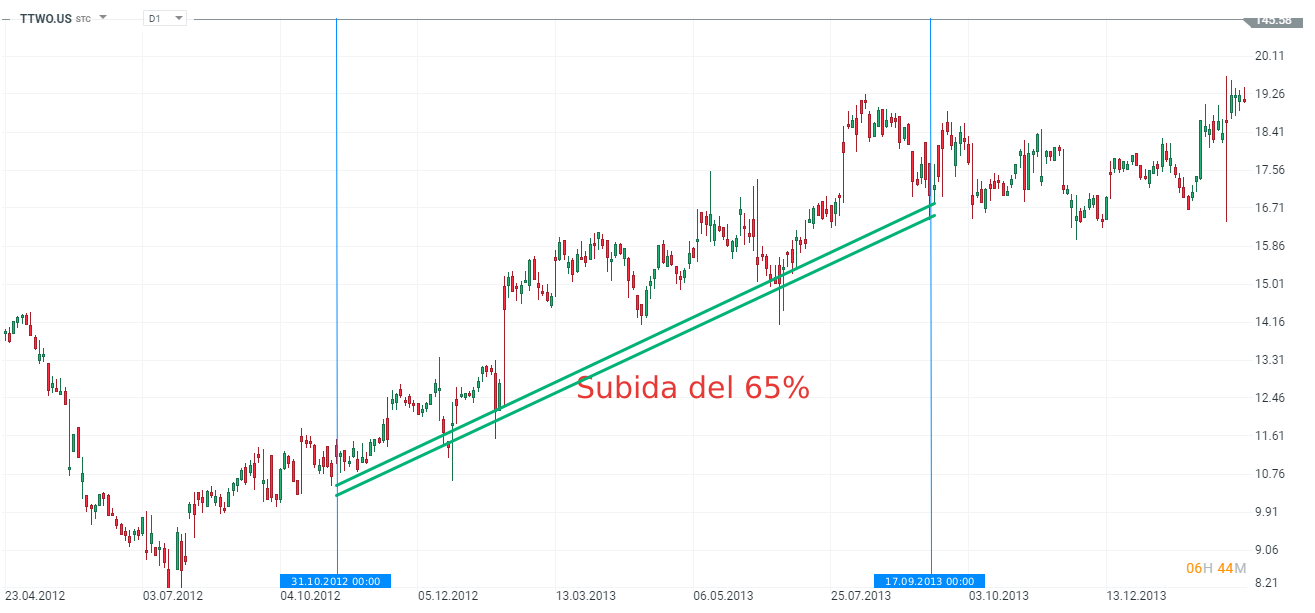 La compañía Take-Two Interactive dueña de Rockstar, está empezando a subir en bolsa ante estos rumores, y podría ser el principio de una tendencia a más largo plazo, ya que desde octubre de 2012 que hicieron oficial el lanzamiento del Gta 5, hasta que finalmente salió a la venta, las acciones de la compañía se revalorizaron un 65%.