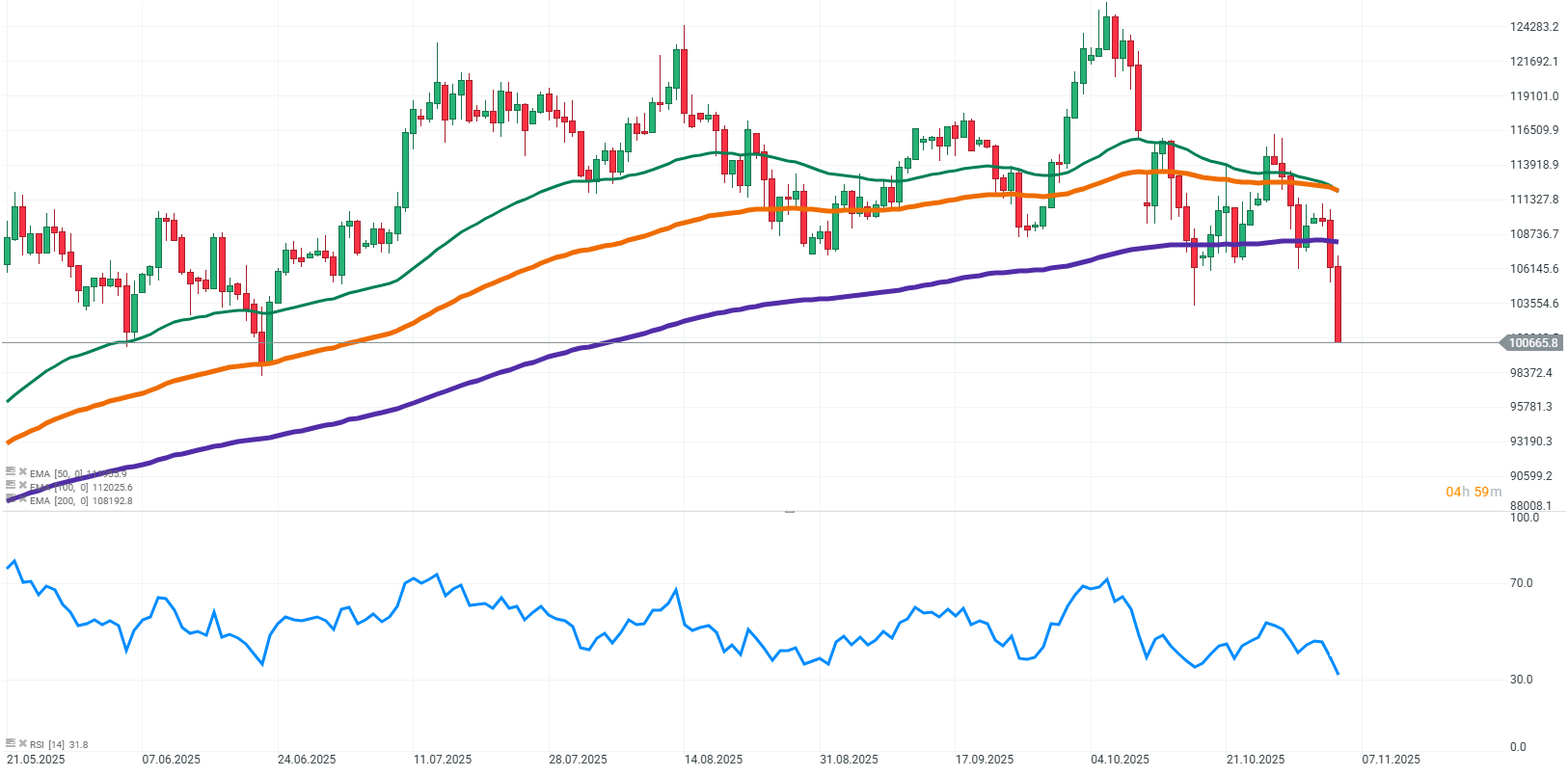 El mercado de criptomonedas se encuentra actualmente bajo presión por varias razones clave. En primer lugar, la incertidumbre macroeconómica y la política monetaria limitan significativamente el apetito por activos de mayor riesgo. La Reserva Federal aún no ha emitido señales claras sobre posibles recortes adicionales en las tasas de interés, lo que genera incertidumbre entre los inversores. Además, un dólar fortalecido y la creciente preocupación por la economía global están llevando a los inversores a actuar con cautela y a reducir su exposición a activos más volátiles, incluidas las criptomonedas. Como resultado, estamos viendo fuertes caídas, con el Bitcoin retrocediendo un cinco por ciento, hasta ubicarse en torno a los 101.000 dólares, mientras que Ethereum ha caído más de un cinco coma siete por ciento, situándose aproximadamente en 3.377 dólares. Estos movimientos de precio tan marcados reflejan claramente la fuerte influencia que los factores de riesgo actuales están ejerciendo sobre el mercado.
