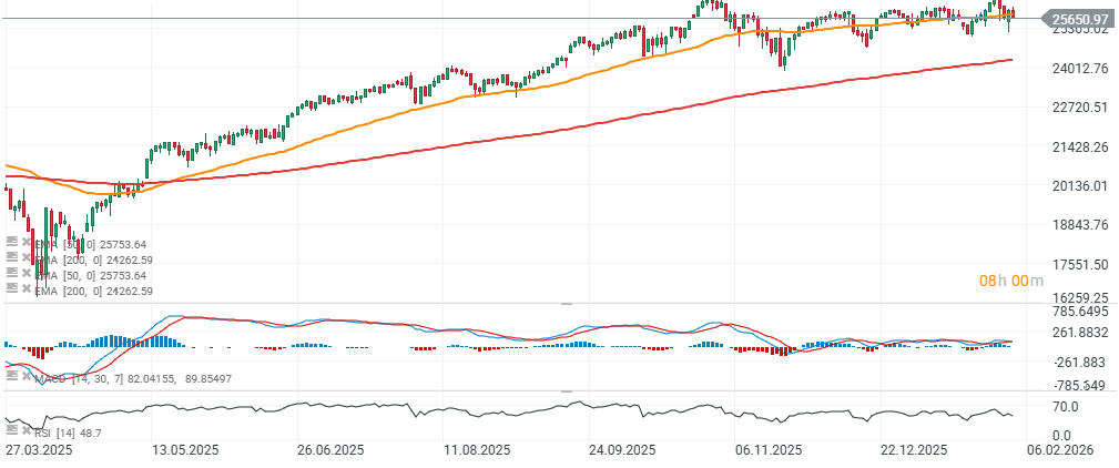 - ServiceNow (NOW.US) baja un 6%, alcanzando su nivel más bajo desde la primavera de 2024, a pesar de sus sólidos resultados y un crecimiento interanual de los ingresos de casi el 20%.