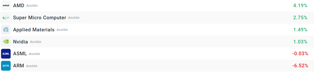 Jornada de contrastes en el sector de los semiconductores. La tónica es positiva en general, aunque las acciones de ARM se están desplomando porque ha perdido un juicio con Qualcomm sobre violaciones de su arquitectura. Esto ha sido un duro golpe para la empresa y la directiva ya ha dicho que está decepcionada. Por otro lado, las acciones de Super Micro siguen experimentando una volatilidad alta y todo indica que una parte importante de las operaciones diarias son realizadas por especuladores.