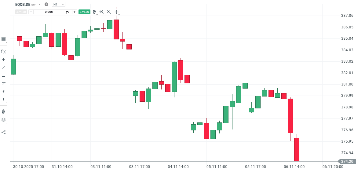 Dentro de la amplia oferta de instrumentos financieros de XTB, nuestros usuarios pueden encontrar ETFs del Nasdaq. Entre los ETFs más destacados que nos permiten replicar el comportamiento del índice podemos encontrar el EQQB.DE. Al igual que ocurre con el resto de ETFs o acciones de nuestra cartera, los primeros 100.000 euros de negociación mensual no tienen comisión de compra ni de venta. Además, aquellos que quieran invertir en varios tipos de activos a la vez pueden hacerlo a través de nuestros planes de inversión, una funcionalidad que permite combinar distintos títulos, programando las aportaciones de manera periódica y eligiendo tanto el importe como el plazo o método de pago. En concreto, nuestros usuarios pueden crear su plan de inversión a partir de tan sólo 15 euros, pudiendo elegir hasta 9 ETFs diferentes en cada uno de sus planes.