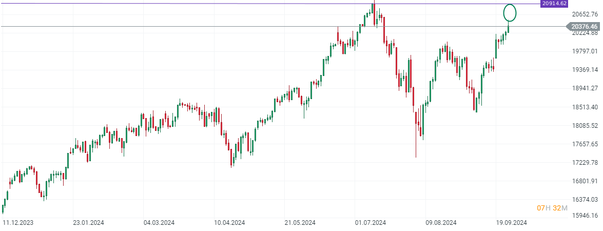 El Nasdaq 100 sube un 1% y vuelve a atacar máximos históricos gracias a las expectativas de bajadas de tipos. Recordemos que las empresas que se recogen en este índice se suelen ver beneficiadas de las bajadas de tipos de interés, debido a que gran parte de sus beneficios se ubican en el futuro. Además, sus costes de financiación bajan, lo que rebaja la presión de sus costes financieros.
