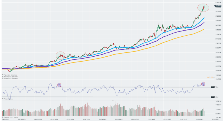 El oro se dispara, alcanzando nuevos máximos históricos en los 4.090 dólares