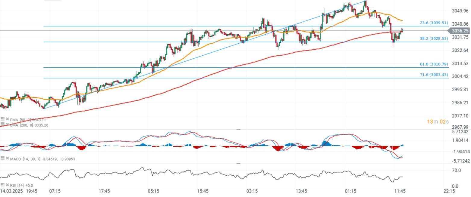 El precio del oro se ven presionado hoy por la apreciación del dólar estadounidense (el USDIDX sube casi un 0,5%). El oro ha caído casi un 0,5% desde su máximo histórico alcanzado ayer tras la decisión de la Fed. Sin embargo, la liquidación impulsada por la toma de beneficios se ha detenido en el importante nivel de 3030 dólares.