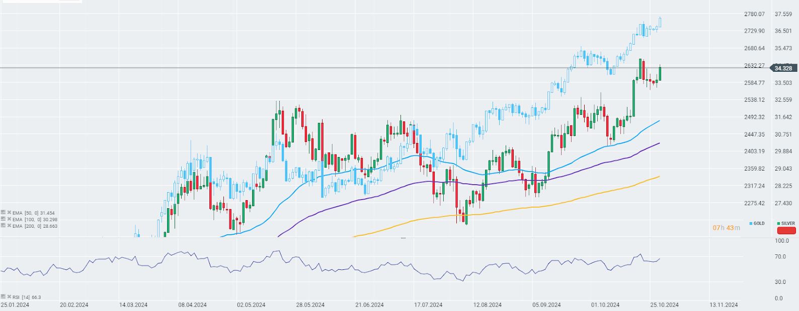 Por su parte, el precio de la plata ha experimentado una subida cercana al 2%, hasta alcanzar los 34,3 dólares. Fuente: xStation5