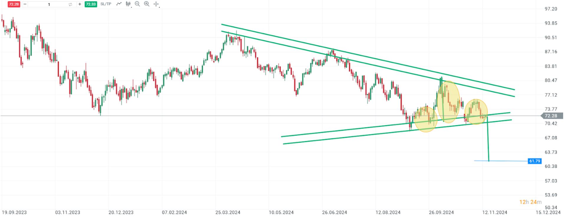 A nivel técnico, podemos observar el inicio de un hombro cabeza hombro en la cotización del petróleo que, en caso de confirmarse, podría bajar hasta el objetivo de los 60 dólares barril.