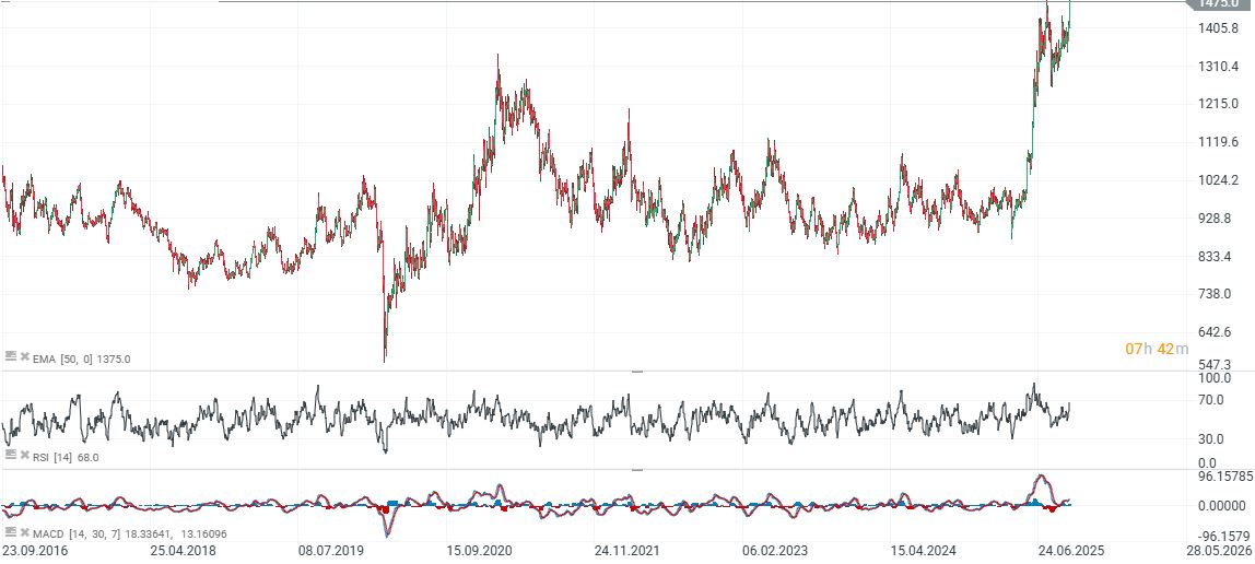 El platino cerca de su máximo histórico impulsado por la demanda de metales preciosos y las expectativas de recortes de tasas de la Fed. Fuente: xStation5