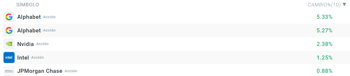Acciones que suben en el S&P 500