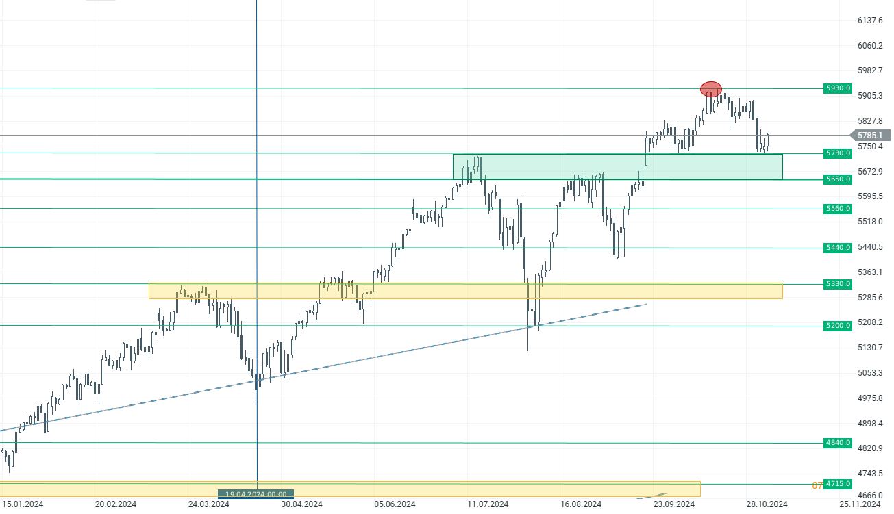 El índice S&P 500 repunta hoy un 0,70% hasta los 5.785 puntos. La reciente corrección se detuvo perfectamente en los niveles de soporte en torno a los 5.730 puntos. Esta zona sigue siendo el soporte más cercano en caso de que vuelvan a caer. Por otro lado, para los alcistas, la resistencia más cercana se encuentra por encima de los 5.900 puntos.