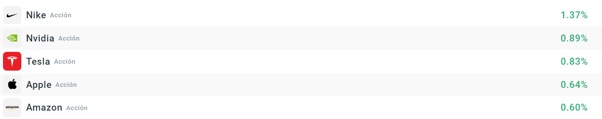 Dentro de las acciones que mejores resultados están teniendo en el S&P 500, destacan las de Nike, que recuperan parte del terreno perdido en la sesión de ayer. Por su parte, Nvidia también sube, ayudada por unas buenas cifras de venta de TSMC. Las acciones de Tesla, que mañana presentará su esperado robotaxi, suben debido a los datos de la CPCA, que apunta que vendió alrededor de 88.000 automóviles fabricados en China