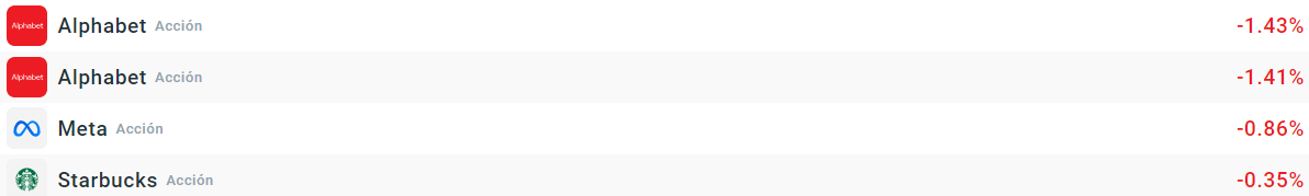 En las caídas, volvemos a ver a las acciones de Alphabet, matriz de Google. La empresa se enfrenta al Departamento de Justicia de Estados Unidos e incluso se apunta que Alphabet podría tener que segmentar la empresa. Sin embargo, los expertos apuntan a que esto es improbable. Esto pudimos verlo hace años, cuando Microsoft tenía que hacer precisamente una división de la empresa y finalmente no se llevó a cabo.