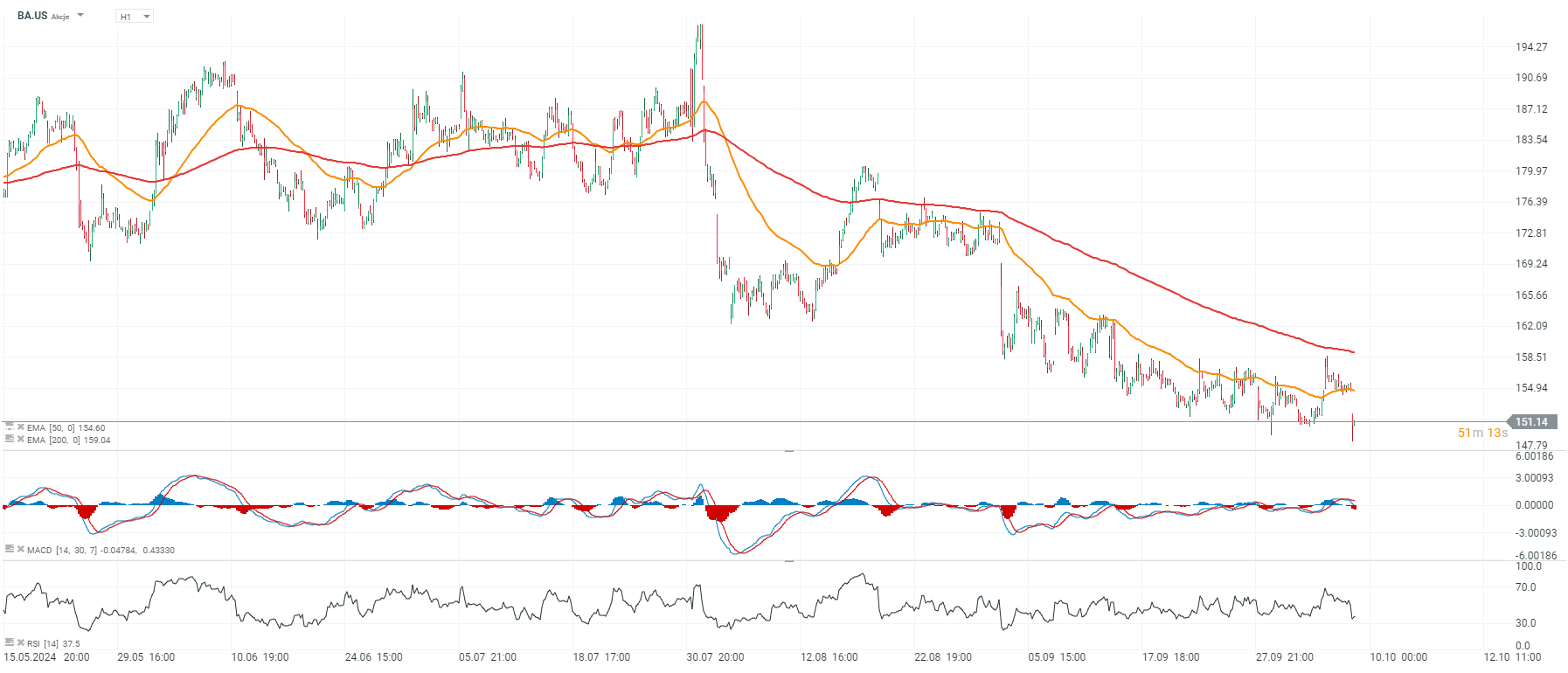 Boeing prueba hoy niveles no vistos desde octubre de 2022, a 150 dólares por acción, con un peor comportamiento que el sector de defensa en general.