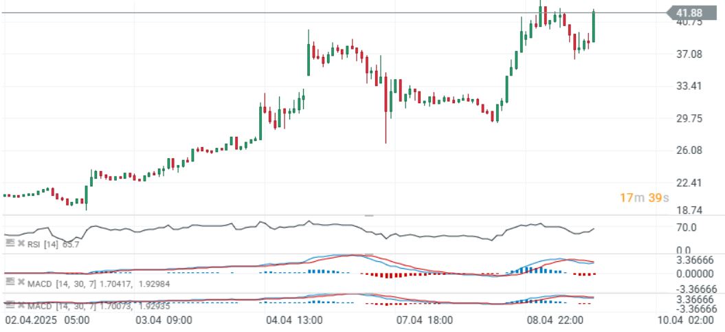 Los futuros del índice CBOE VIX (VIX) suben casi un 7% mientras que el S&P 500 cae un 1,8% por temor a que la guerra comercial entre Estados Unidos y China se intensifique aún más, ya que China decidió aumentar los aranceles a los productos estadounidenses del 34 al 84%, antes de las negociaciones con la Casa Blanca.