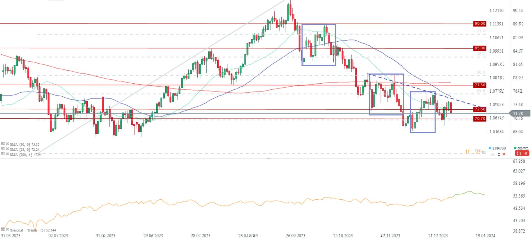 Sin embargo, durante el fin de semana, Arabia Saudita anunció una reducción en los precios de exportación de su petróleo crudo ligero árabe a los países asiáticos, recortando el precio a los niveles más bajos en 27 meses. Se especula que esta medida está dirigida no sólo a los países que no pertenecen a la OPEP sino también a los productores dentro del propio cartel, con el objetivo de evitar la manipulación bajo el acuerdo actual y asegurar una mayor participación de mercado. Además, Reuters indica que la producción de la OPEP aumentó en diciembre, principalmente debido a una mayor producción en Nigeria, Irak y Angola, compensando nuevos recortes de producción por parte de Arabia Saudita. Vale la pena señalar que Angola abandonará la estructura del cártel de la OPEP este año.