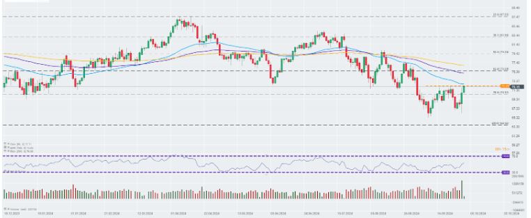 El crudo WTI está superando los máximos locales marcados en septiembre de este año. Un aspecto clave que podría definir si el petróleo puede extender sus subidas es el mantenimiento de la zona de los 72 dólares antes mencionada, que constituye un punto de control de corto plazo para alcistas y bajistas. Fuente: xStation