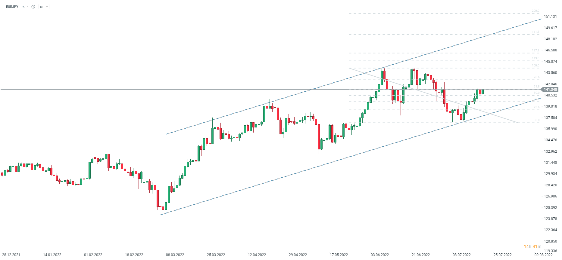 EURJPY se recupera de las pérdidas de ayer. El par debería permanecer volátil a lo largo del día, ya que es probable que las expectativas no concluyentes de una decisión del BCE resulten en una sorpresa. Fuente: xStation5