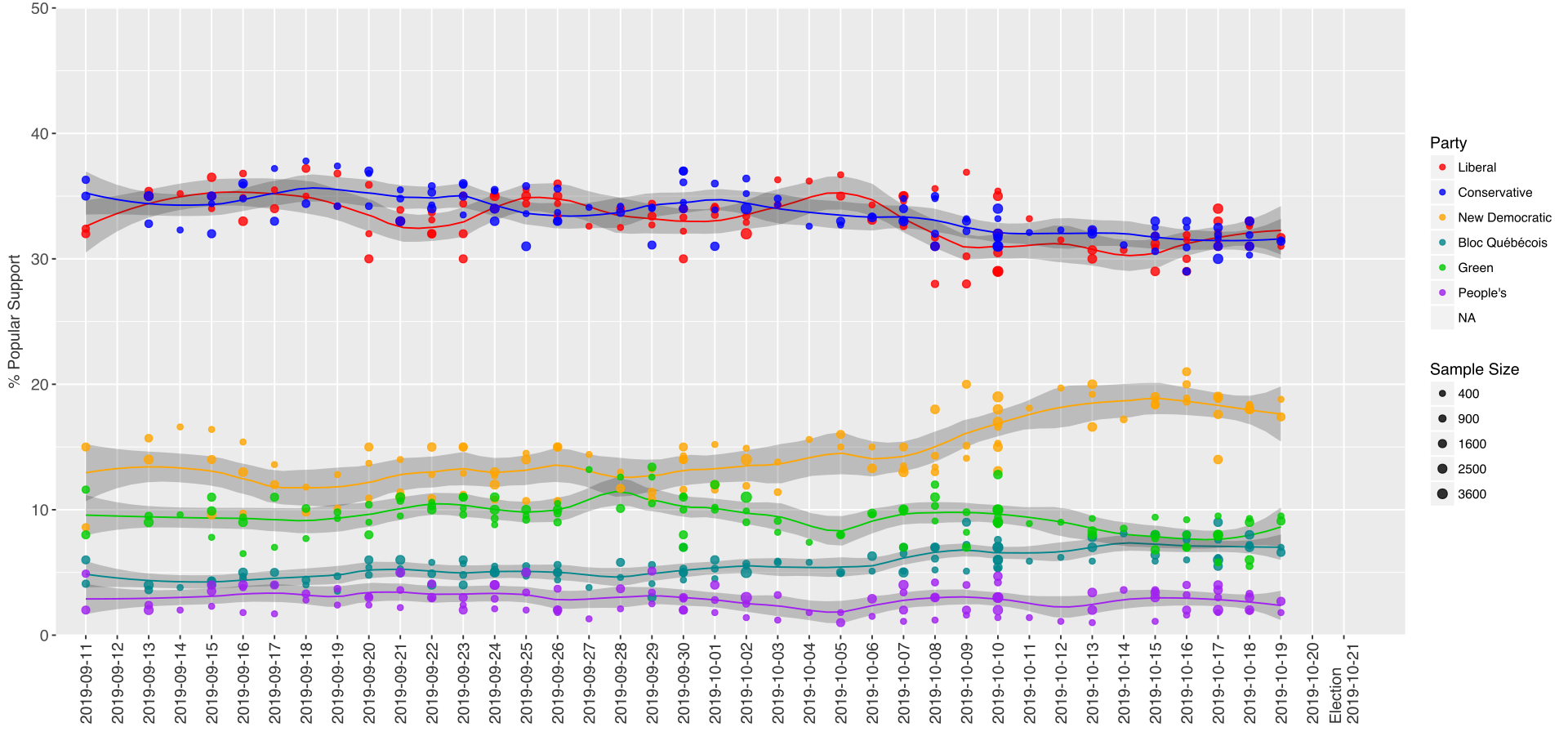 Será una carrera extremadamente ajustada entre los dos partidos políticos más grandes, ya que tanto los liberales como los conservadores han estado muy unidos en las semanas previas a las elecciones federales. A su vez, si bien el PND ha cobrado impulso desde el comienzo de este mes, también es poco probable que ponga en peligro a las dos partes mencionadas anteriormente. Cuando se trata de posibles coaliciones, Trudeau aún no ha especificado si estaría interesado en firmar tales acuerdos, y parece que mucho dependerá del margen entre los liberales y los conservadores en las elecciones.