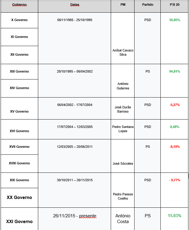 La gobernanza del país, como el partido político y las medidas adoptadas, pueden tener un impacto económico en las empresas y familias. Esto puede dar lugar a cambios en los costes o ingresos de las empresas y, por tanto, afectar a sus beneficios, lo que a su vez afecta a los precios de las acciones. La estabilidad política, las políticas económicas, la carga fiscal, las regulaciones y la burocracia y las políticas sociales y ambientales pueden tener un impacto directo en el índice accionario. Por lo tanto, en teoría, la gobernanza del país debería tener un impacto directo en el desempeño del PSI.