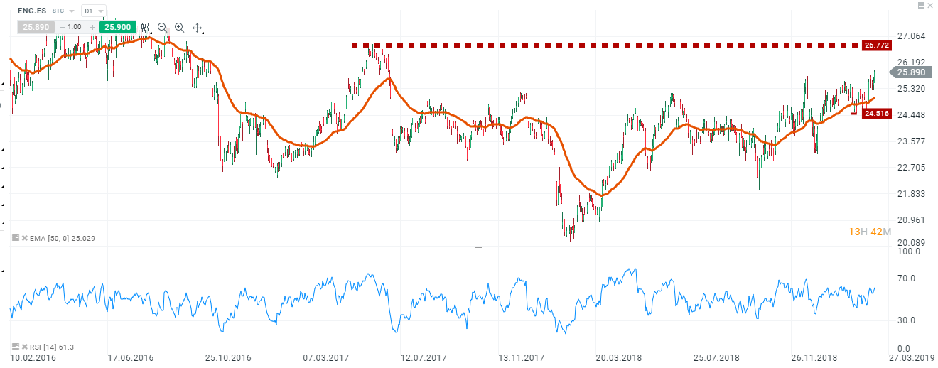 Desde el punto de vista técnico, el titulo marcó un suelo a mediados del mes de febrero de 2018. Este nivel actuó como punto de inflexión para comenzar a dibujar una estructura de máximos y mínimos crecientes. Desde finales del año pasado, el titulo ha roto al alza el canal bajista a largo plazo que venia sumergido desde finales de 2015. A corto plazo y desde la ultima corrección coincidente con el nivel 50 de Fibonacci la cotización inicia una tendencia alcista. El primer objetivo que marcamos está situado en los 26,38 euros por acción. De continuar con este impulso alcista marcaríamos un segundo objetivo en los 26,70 euros por acción.