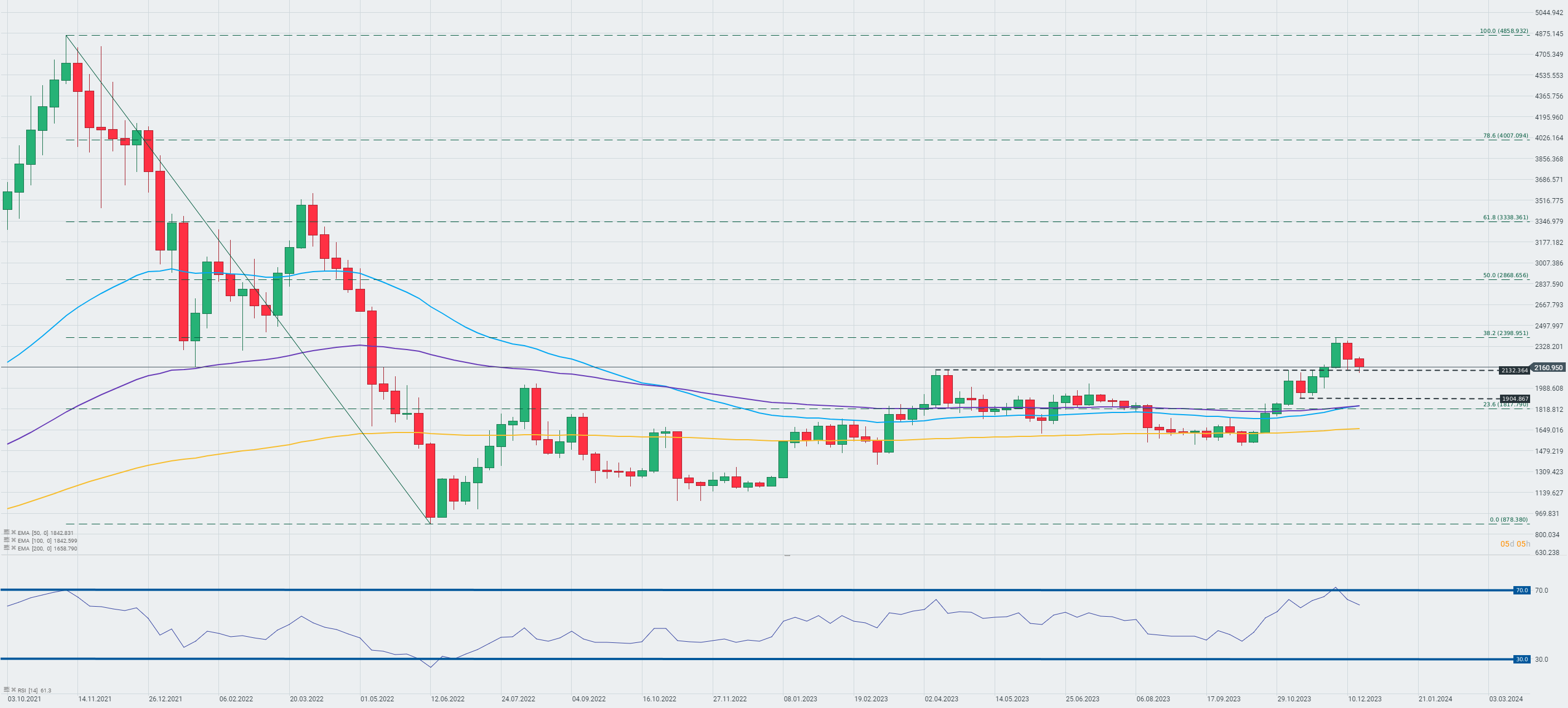 Las criptomonedas cotizan a la baja hoy, aunque la magnitud de las primeras caídas ya se ha borrado parcialmente. Actualmente, Bitcoin ha vuelto a los niveles mínimos locales establecidos en la primera quincena de diciembre. La situación en Ethereum es actualmente un poco más pesimista debido a que la criptomoneda ha superado los mínimos locales que mencionamos al describir Bitcoin (también la primera quincena de diciembre).