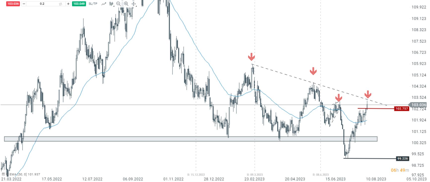 Por otro lado, el índice del dólar estadounidense está una vez más probando la línea de tendencia bajista. Si los vendedores retoman el control del precio, el par EUR/USD podría recuperarse pronto.
