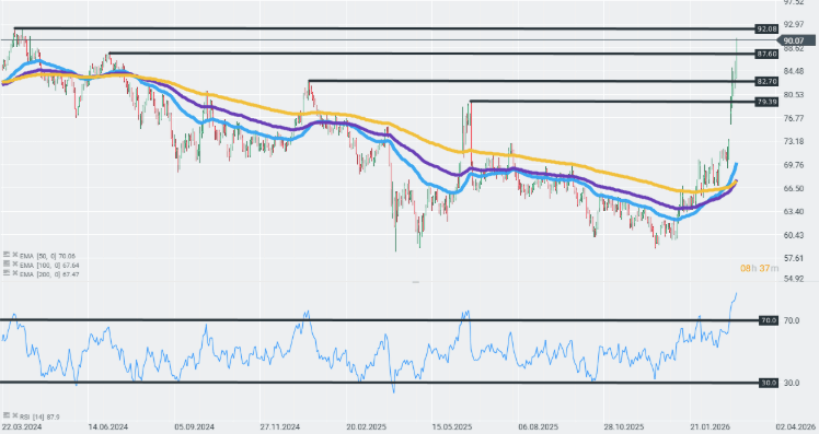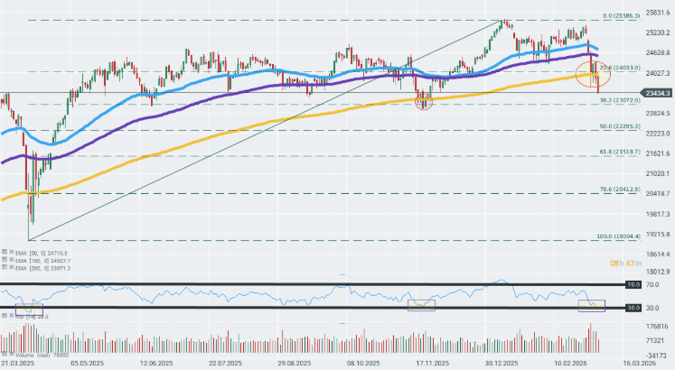 El sentimiento de mercado se está deteriorando rápidamente justo antes de la apertura de la sesión estadounidense. El índice alemán DAX 40 cae actualmente casi un 2% y ha perforado claramente la zona de soporte clave marcada por la media móvil exponencial de 200 días por primera vez desde noviembre del año pasado.
