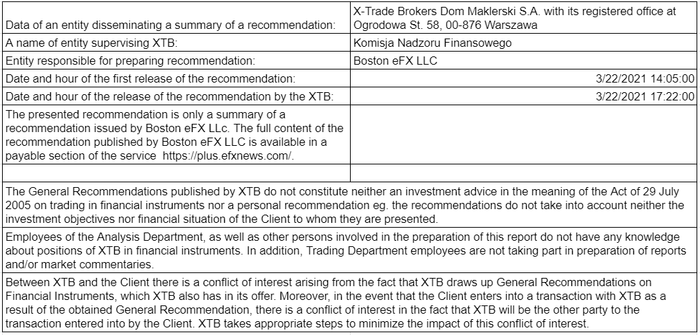 El Banco recomienda tomar posiciones cortas en el par con los siguientes niveles
