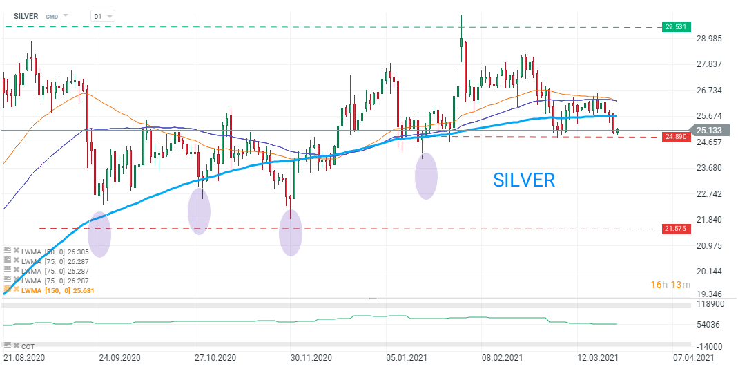 La plata se ha retirado a la zona de soporte de $ 24,89, que está marcada con el límite inferior de un rango de negociación reciente. Fuente: xStation5