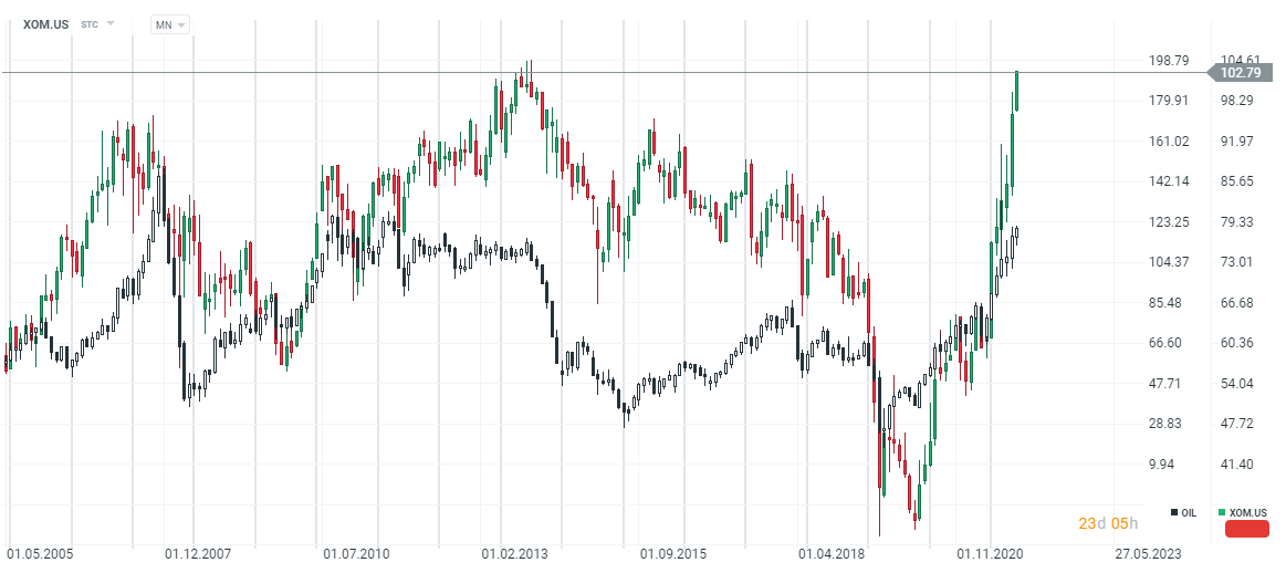 ExxonMobil (XOM.US) and OIL on the MN interval. Source: xStation5