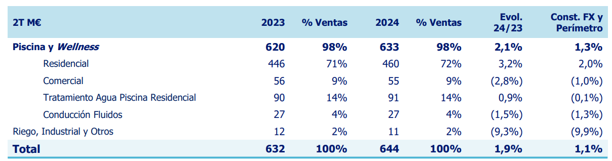 La española ha conseguido presentar unos resultados en línea con lo esperado, aunque lo que más ha tranquilizado a los inversores es que mantiene sus previsiones para el año completo. En concreto, ha conseguido reportar unas ventas de 644 millones de euros en el segundo trimestre, frente a los 639,9 millones de euros esperados y los 632 millones de euros reportados en 2023. El mejor desempeño de hecho ha venido de América del Norte, donde el crecimiento ha sido del 8,2%. Por segmentos, el residencial ha sido el que mejor desempeño ha tenido, con un 3,2% de aumento, aunque el resto ellos han tenido un mal trimestre.