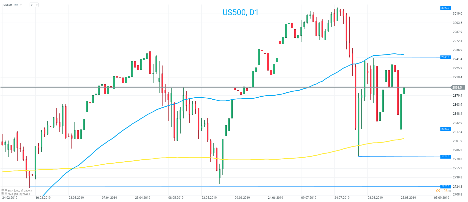 Durante la mayor parte del mes, el S & P500 ha estado en un rango que puede definirse libremente por los SMA de 50 y 200 días. Una clara ruptura por encima de 2945 pondría fin a esto en una tendencia alcista, mientras que los osos darían la bienvenida a un cierre diario por debajo de 2823 (o movimiento intradiario por debajo de 2776). Hasta entonces, el rango permanece intacto. Fuente: xStation