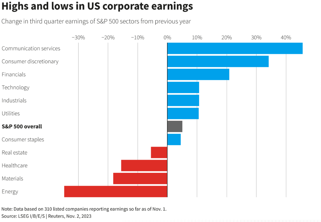 Principalmente malos han sido los datos de los sectores de materiales, farmacéutico y energético, favorecido este último en 2022 por el alza en el precio del petróleo y el gas, y que en esta ocasión ha quedado en su amplia mayoría por debajo de las estimaciones. Mientras tanto financieras, servicios de comunicación y cosumo discrecional, son las más favorecidas.