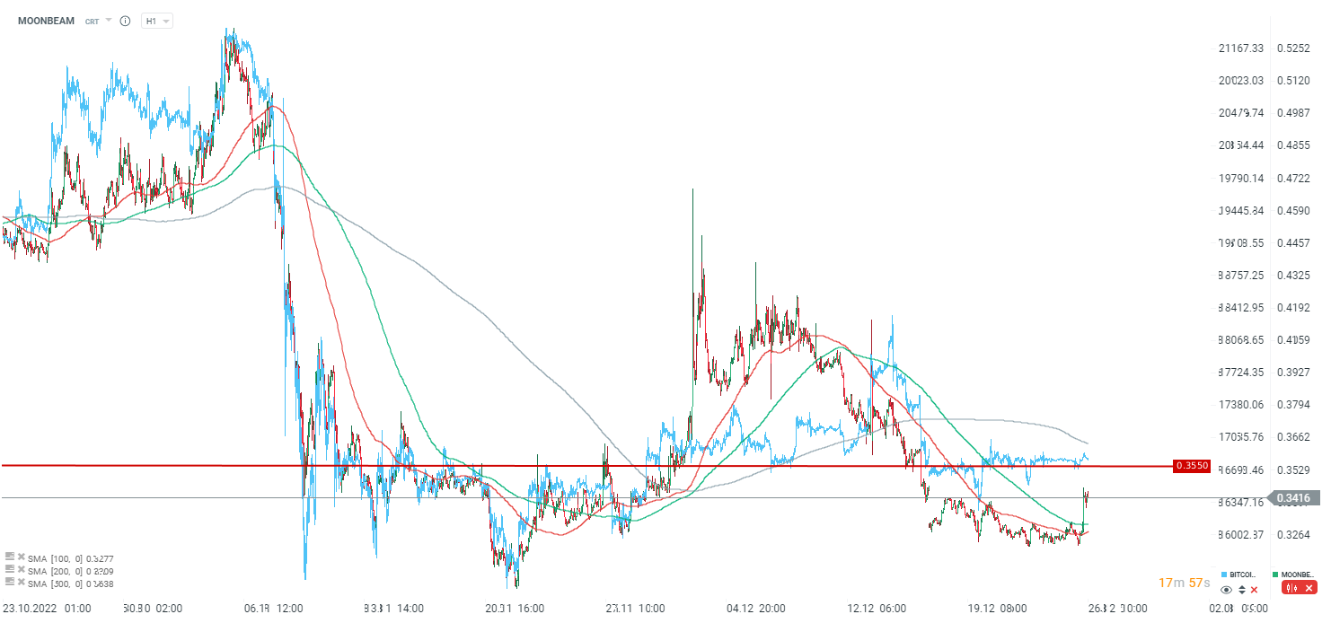 Por otro lado, al observar la volatilidad en las últimas semanas, podemos ver que Moonbeam (GLMR) ha tenido un desempeño bastante peor que Bitcoin. Al mismo tiempo, se puede ver que después de un aumento repentino similar que tuvo lugar a principios de diciembre, el precio borró rápidamente parte de la ganancia. Después de romper la resistencia en 0.34, el próximo objetivo para el toro debería ubicarse alrededor de 0.3550.