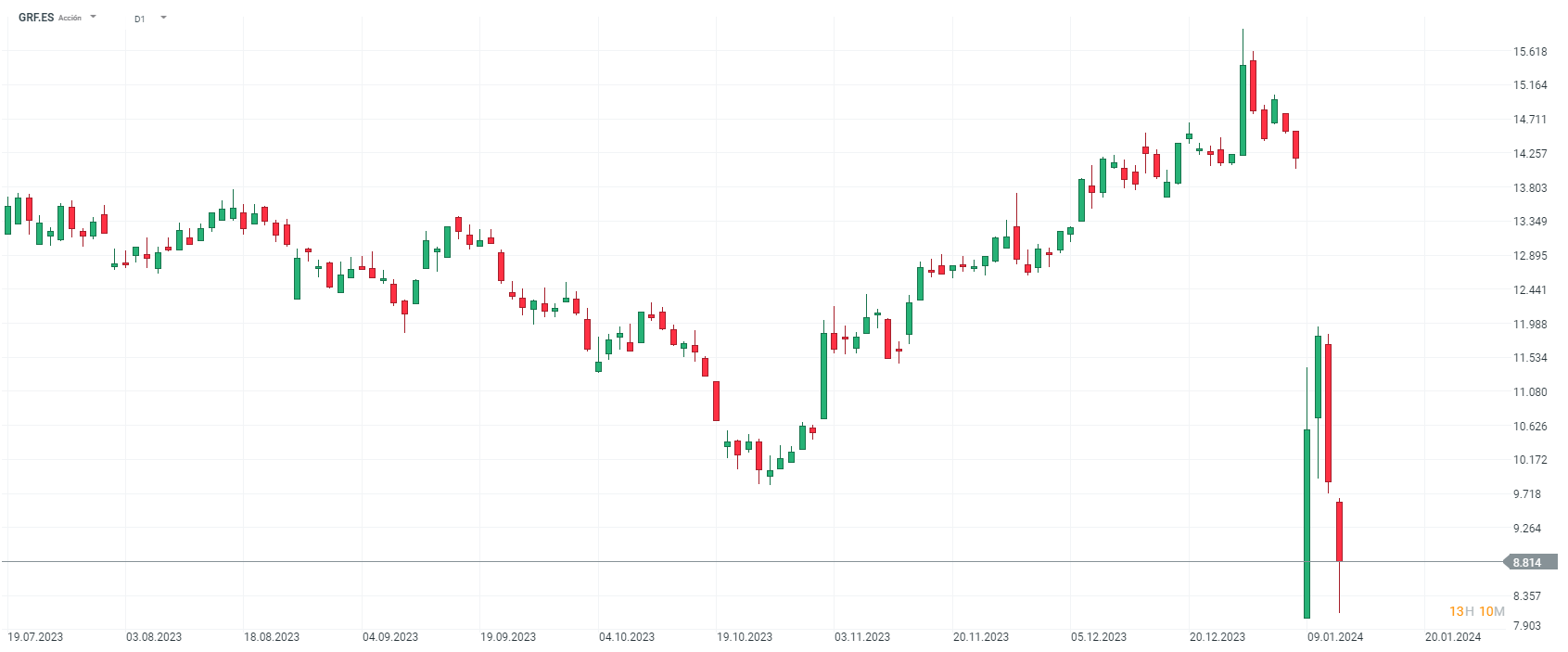 La española Grifols (GRF.ES) sigue en caída libre tras el informe publicado por Gotham este martes y sobre todo tras una conferencia de prensa en el día de ayer que no convenció al mercado. Las acciones caen hoy más de un 16% y se ve complicado una vuelta a la normalidad tras todos los acontecimientos de esta semana.