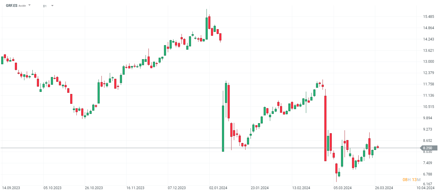 Las acciones de Grifols caen un 44% en este 2024 y tan solo Solaria le iguala dentro del índice español.