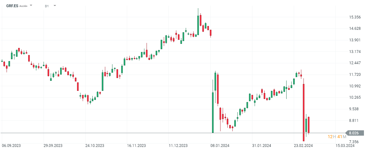 Grifols (GRF.ES) sigue en caída libre durante la sesión de hoy y se encuentra en una particular montaña rusa tras la presentación de resultados de la semana pasada. La compañía sigue generando dudas entre los inversores, a pesar de que a través de dos comunicados anunciados a la CNMV consiguió remontar algo de la caída del jueves durante la sesión del viernes.