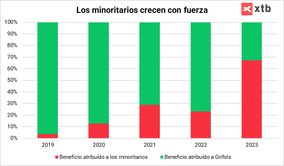 Además, el riesgo de adquirir una empresa a la que se le acusa de manipulación contable recoge muchos riesgos. Por otro lado, la realidad es que Grifols no posee ni a BPC ni a Haema, por lo que estarían comprando una compañía en la que en 2023 tuvo más minoritarios que beneficio neto atribuido a la propia Grifols.