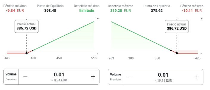 Esto te permite posicionarte según el escenario que consideres más probable: si crees que Tesla podría verse favorecida por progresos en FSD, nuevos hitos en robotaxis, mejoras en Optimus o mayor visibilidad sobre proyectos como el CyberCab o el Tesla Semi, una call ofrece exposición directa a ese entorno. Si, por el contrario, anticipas correcciones por presión competitiva, debilidad en las ventas de vehículos eléctricos o volatilidad derivada del tono de Musk y sus promesas, una put permite capturar ese movimiento. En ambos casos, el riesgo máximo queda limitado a la prima pagada.