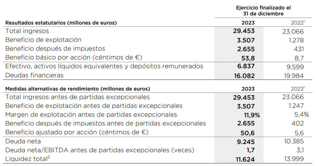 Por otro lado, el endeudamiento se ha reducido hasta niveles sanos para una compañía de estas características. Esto ha sido posible gracias a la generación de caja, que para el año 2023 al completo ha sido de 1.300 millones de flujo de caja libre.