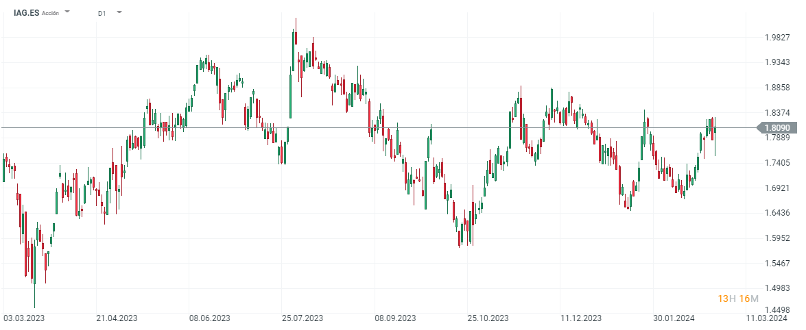 Las acciones de IAG tan solo suben un 08% en lo que llevamos de 2024.