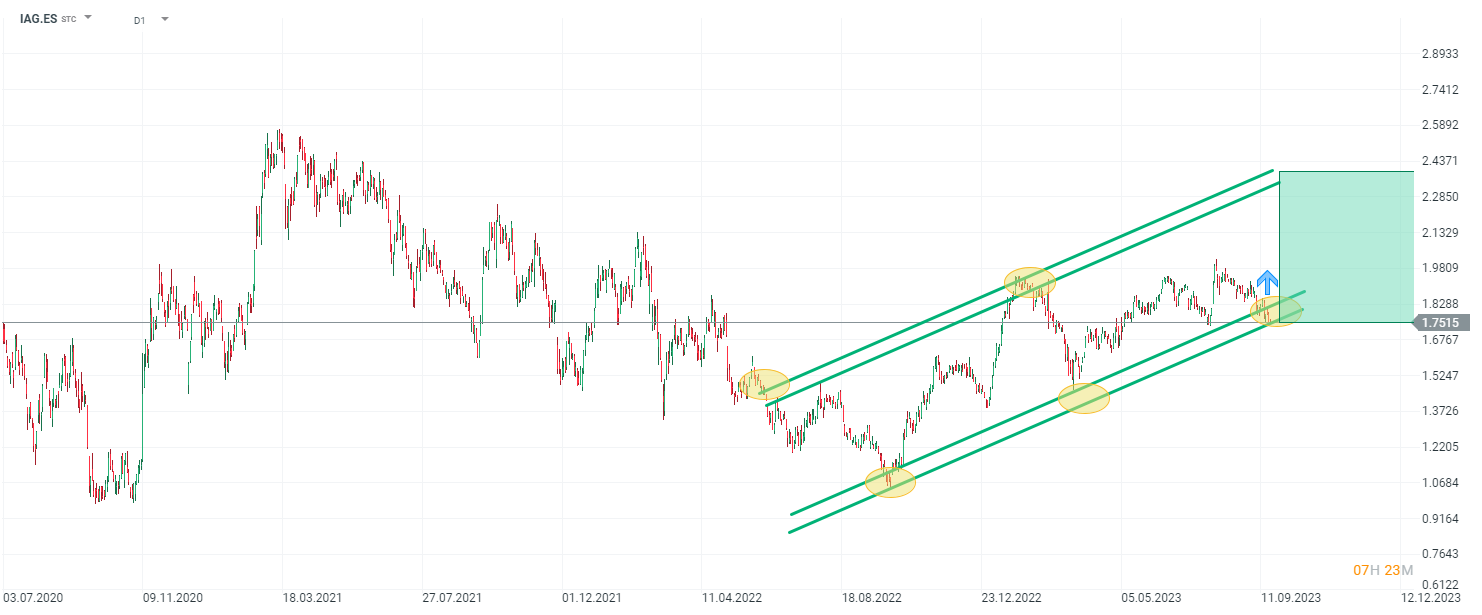 A nivel técnico, su precio se encuentra cotizando en la parte baja de un canal alcista, que en caso de conseguir ir al alza le permitiría tener como objetvio a medio plazo llegar a los 2,45 euros.