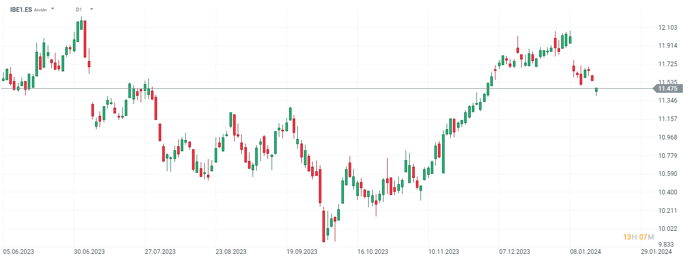 Las acciones de Iberdrola subieron un 8,6% en 2023 y este año acumula una caída del 3,7%.