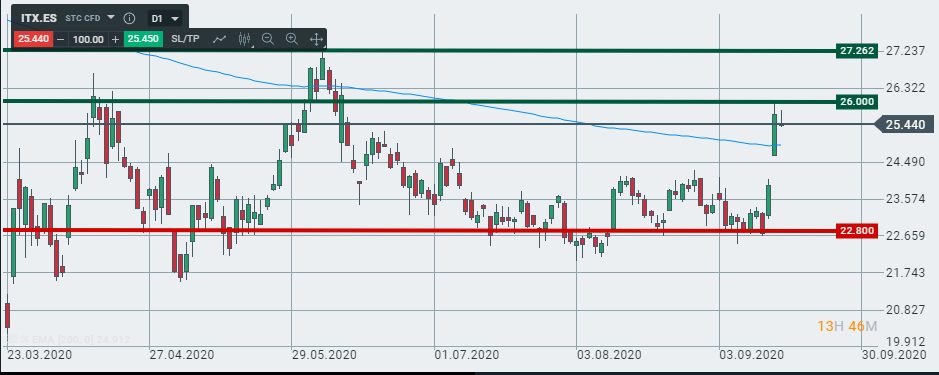 Este nivel marca un precio de 26€ por acción y tras el primer rechazo inicial, requerirá de consolidar niveles de soporte en los 24,5€ (50% de Fibo) para considerar un cambio de tendencia. En caso de romper esta resistencia, la acción podría dirigirse hacia los 27,2€ que marcariamos como segundo objetivo.