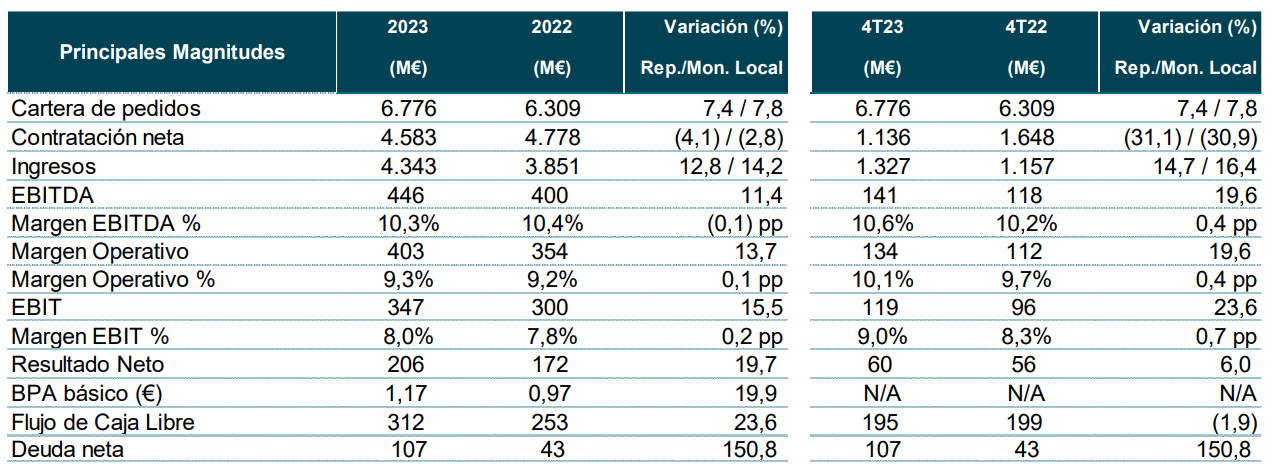 La compañía ha conseguido aumentar el crecimiento que estaba experimentando a lo largo del año, con un aumento de los ingresos del 12,8% en 2023 al completo, pero del 14,7% en el cuarto trimestre. Este crecimiento ha estado principalmente impulsado por el segmento de Transporte y Defensa, que ha crecido un 18,1% en el año completo y un 20,5% en el último trimestre.