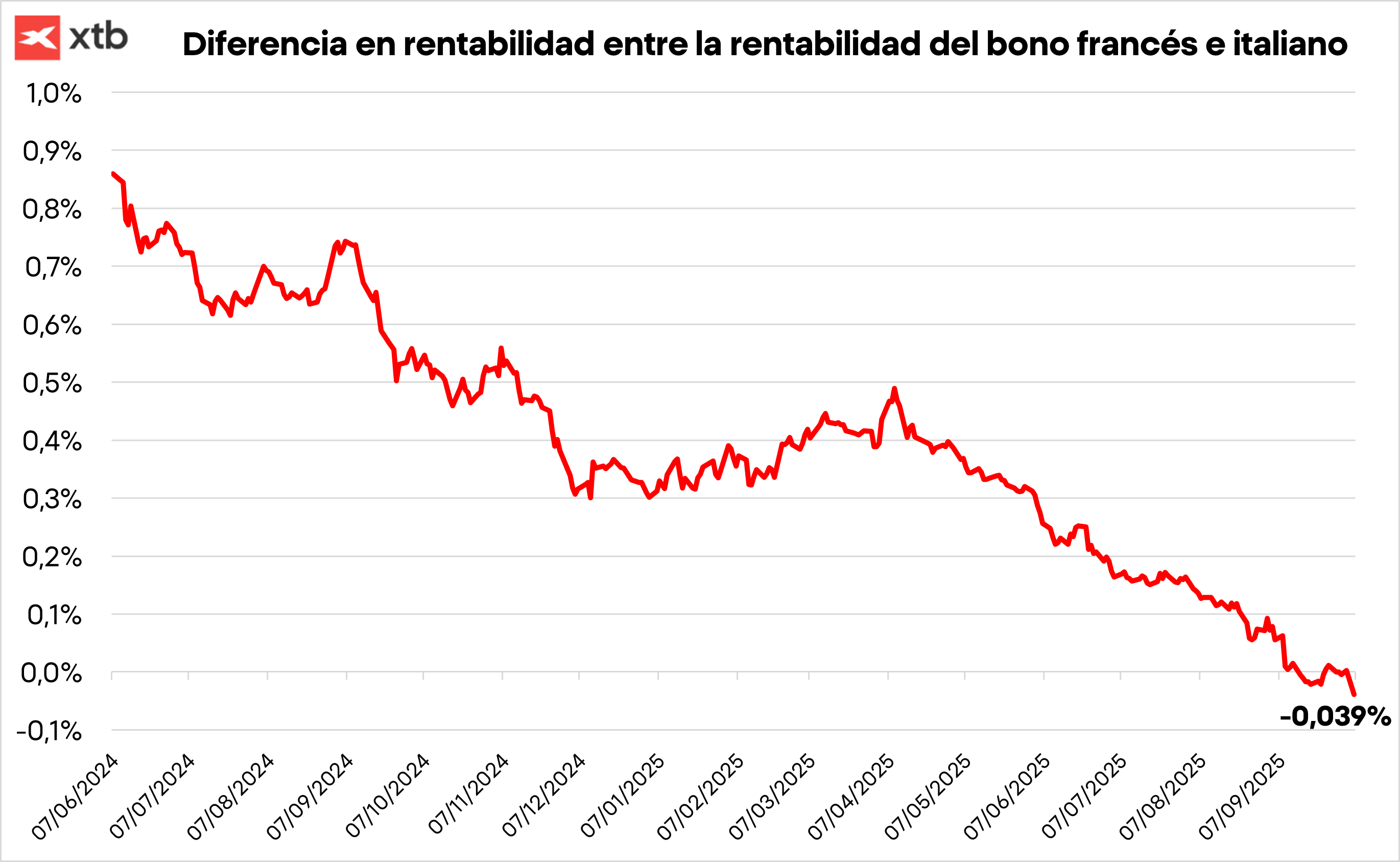 Los mercados franceses cayeron tras la noticia, con el índice bursátil Cac 40 bajando un 1,6%, impulsado por la caída de las acciones bancarias, como Société, BNP o Credit Agricole, que lideran las caídas del día, debido a la inestabilidad política. Para explicar este movimiento podemos ver que la subida en la rentabilidad de los bonos y por tanto la caída en el precio de los mismos, impacta directamente en los activos de estas entidades lo que erosiona su capital, mientras que las dudas políticas genera incertidumbre que hace que empresas y familias frenen la inversión y el consumo.