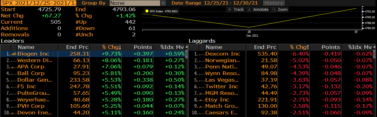 El período entre navidad y Año Nuevo generalmente se caracteriza por una menor liquidez e intensidad de los datos macro sobre los mercados. El cierre de 2021 no parece que vaya a ser diferente, con los mercados a nivel global registrando pequeños movimientos en la última semana del año. Sin embargo, los títulos de la compañía Biogen (BIIB.US) destacaron sobre otras grandes compañías en la jornada de ayer, gracias a una subida de su precio a causa de las noticias provenientes de Corea del Sur. A continuación se amplían detalles acerca de lo anterior.