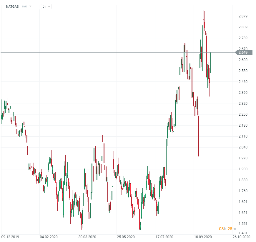 Estamos entrando en un período en el que los precios de NATGAS se vuelven muy volátiles estacionalmente. Si bien aún no es noviembre (cuando las proyecciones de la temperatura del invierno pueden decidir sobre los enormes movimientos de precios), NATGAS ha subido más del 7% hoy debido a la noticia de que se está formando una nueva tormenta en el Caribe. La tormenta podría potencialmente interrumpir la producción y las exportaciones justo en el momento en que comenzó a normalizarse después de sucesos similares anteriores. NATGAS todavía está cerca del 10% de los mínimos de septiembre.